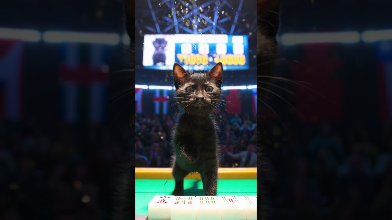 ウチの猫が麻雀をする映画予告作ってみた(AI)